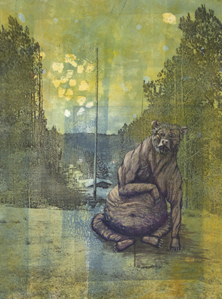 "Next Year's Bear" Intaglio and Gouache on Digital Lithography 10"x14"